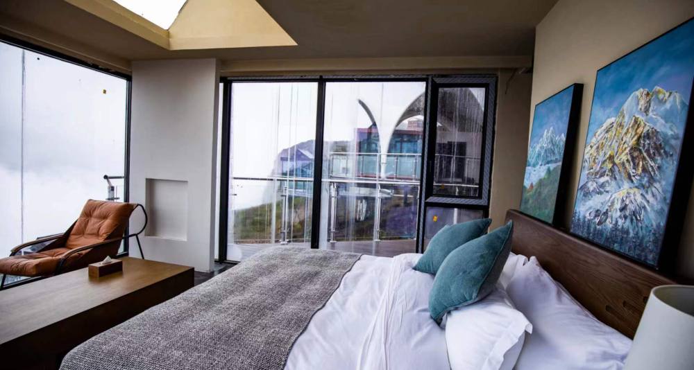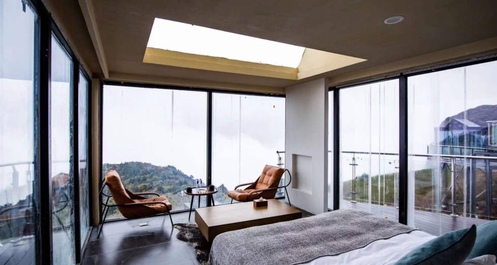 ​牛背山星珀度假酒店位于雅安市牛背山风景区山顶核心区域,直面日出,云海,位置优越,拥有绝佳的观景视野。为践行生态环境保护,酒店多采用装配式建筑群落,极大减少了现场施工所遗留的生态破坏。住进云海里,睡在星空下,酒店设计遵循将极致野奢风光装进空间里,每个窗户都可以看到不同的风景,打造隐秘感,设计感,体验感于一身的度假酒店