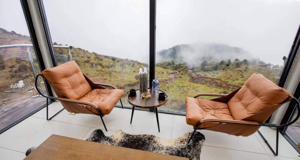 云端·木屋位于轻居二层,挑空的设计,使得房间犹如在云端之上,落地窗及户外露台更增加了人与景的互动。客房配置独立卫浴,24小时热水供应;4瓶矿泉水、2瓶氧气、免费洗漱用品;取暖采用空调及电热毯。