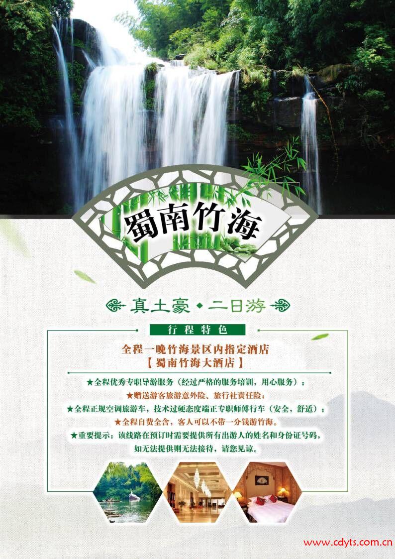 1)交 通:空调旅游车                            2)住 宿:蜀南竹海大酒店双人标准间