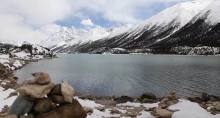 神山脚下的萨普圣湖由神山千年冰雪融化而成,神山山脚衍生一湖清澈的湖水被分为两个部分,靠近山脚的湖水终年不化形成冰山,而另一部分则是透彻的湖水。