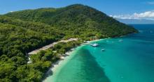 构成的大陆岛屿,近海覆满了珊瑚礁,非常适合近海潜水;岛上有数条步道,游客可欣赏到岛上的热带雨林景致;抵达后或神秘