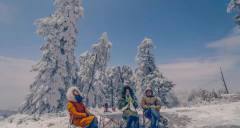 目前,景区的索道、游客集散中心、滑雪场等项目已基本建成,预计在今年(2021)‘五一’开始试运营。总长3.45公里的索道顺着山势绵延而上,直上云霄。